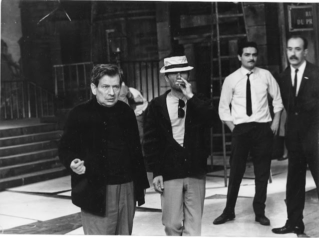 | Kaps pendiente de la colocación de cámaras, detrás con sombrero está Charles Aznavour. Foto cedida por el Museo RTVE. |